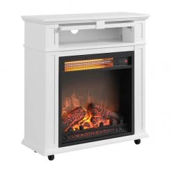 Style Selections Rolling Electric Fireplace – Infrared – 25.6-in – White Oak