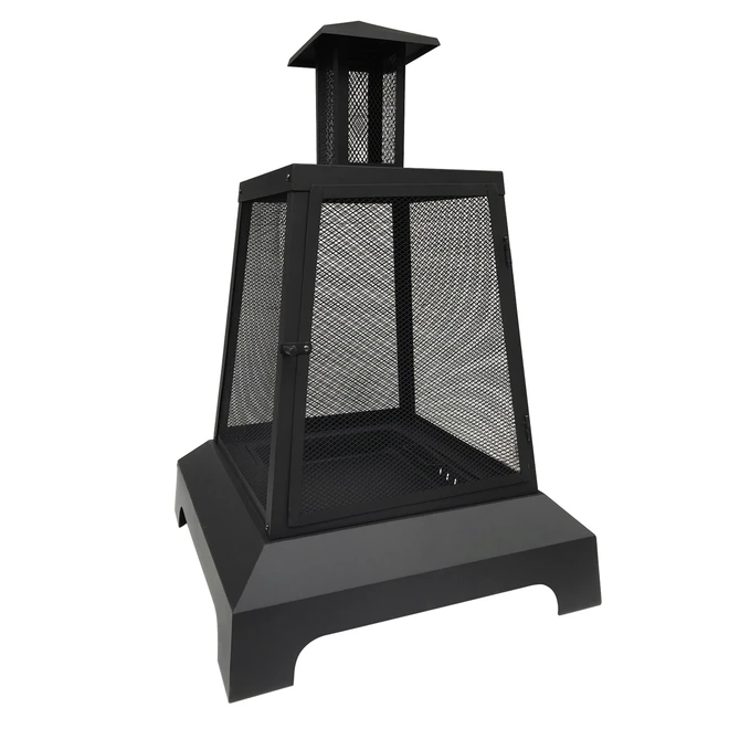 Style Selections offers a nice traditional outdoor fireplace built in sturdy steel with a side door to add wood pieces or logs. The spark-guard mesh lets you observe the fire from all sides of the fireplace, meaning that you can enjoy summer evenings with family or friends.