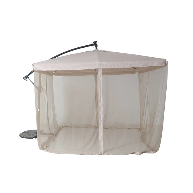 Create a backyard retreat where you can relax this summer with this Style Selections cantilever umbrella. This offset umbrella features a square, 10 ft. x 10 ft. beige canopy that is water-resistant and offers instant shade from the sun. The sleek and durable black powder-coated steel frame is designed to stand up against bad weather. Mosquitoes and bugs won’t drive you indoors thanks to netting that provides protection from bothersome insects. The patio umbrella has a crank handle for easy adjustable positioning, and the steel pole and base ensure a durable and stable design. Base weights are required for full stability and are sold separately.