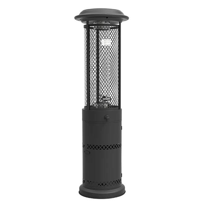 Enjoy your terrasse or patio even in cold temperatures thanks to this Style Selections patio heater. Using propane gas, it generates 36,000 BTU and covers an area of up to 400 sq.ft. In addition, the central flame and cylindrical design of this device allow for an evenly distributed heat. The protective screen prevents contact with the heating cylinder. This patio heater is perfect for both residential and commercial use. Propane tank not included. Backed by a 1-year warranty.