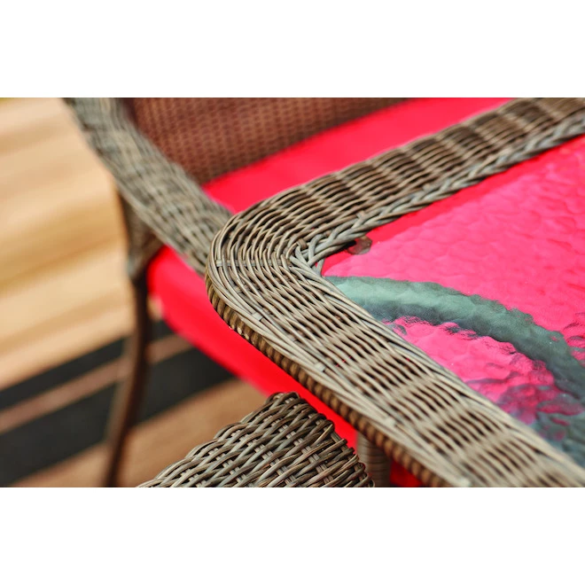 A stylish choice, this Style Selections Spruce Hills dining table will add ample seating space to your outdoor living area. This beautiful patio table features a heavy-duty steel frame covered in all-weather wicker for long-lasting durability. Plus, the rectangular tabletop is made of tempered glass for style and additional safety. It even has a hole to fit an umbrella (sold separately) for your convenience. This spacious outdoor table is perfect for seating up to 6 people. It even comes with a 1-year limited warranty for peace of mind. For the perfect outdoor decor, pair it with other patio furniture from the Spruce Hills collection.
